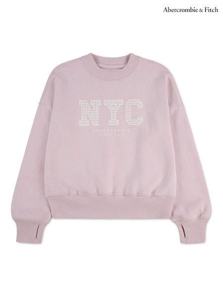 Abercrombie & Fitch Pink Gingham NYC Graphic Crew Neck Sweatshirt