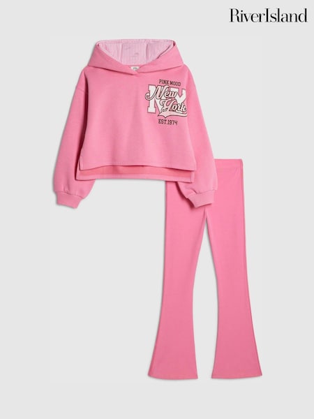River Island Pink New York Hoodie & Kickflare Set