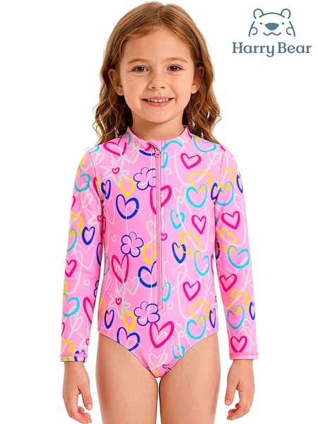 Harry Bear Pink Long Sleeve Hearts, Stars and Flowers Swimsuit