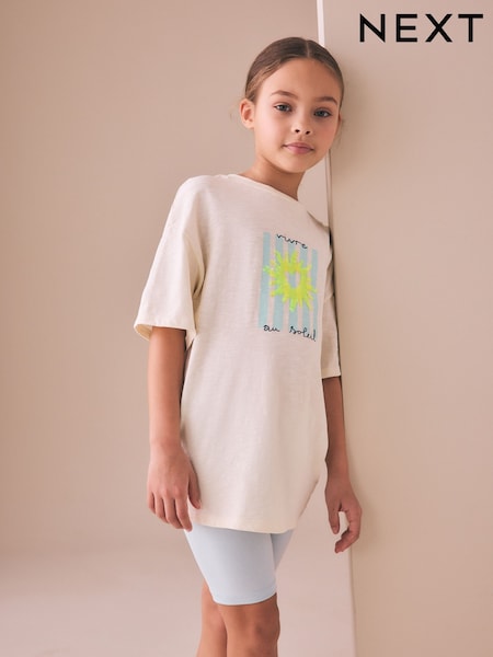 White Pasta T-Shirt and Cycling Shorts Set (3-16yrs)