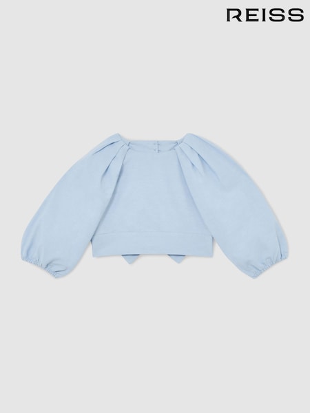 Reiss Pale Blue Marlie 3-9 yrs Puff-Sleeve Tie-Back Top
