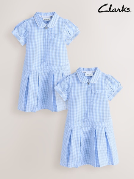Clarks Blue Gingham Zip Front School Dresses 2 Pack