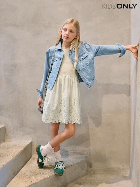 ONLY KIDS White Emroidery Anglais Smocking Dress