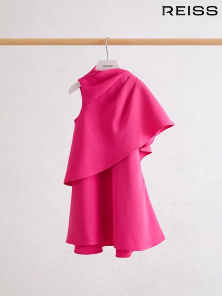 Reiss Pink Santana 9-13 yrs Asymmetric Tiered Draped Dress