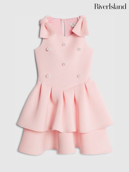 River Island Pink Pearl Embroderied Scuba Dress