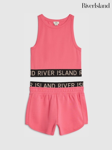 River Island Pink Logo Tank & Runner Short Set