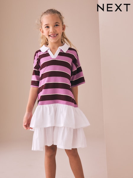 Burgundy Stripe Long Sleeve Rugby Dress (3-16yrs)
