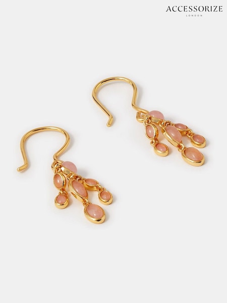 Accessorize Gold 14ct Gold-Plated Rose Quartz Drop Earrings
