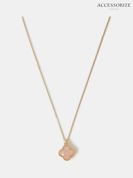Accessorize Gold 14ct Gold-Plated Rose Quartz Clover Pendant Necklace