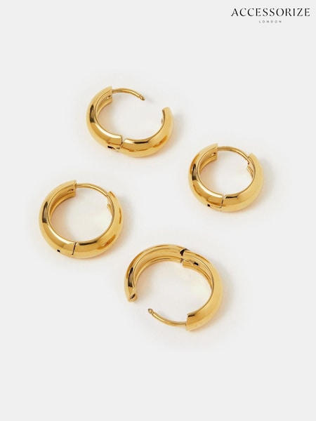 Accessorize Gold Tone Stainless Steel Chunky Hoop Earrings 2 Pack
