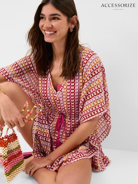 Accessorize Orange Crochet Mini Kaftan