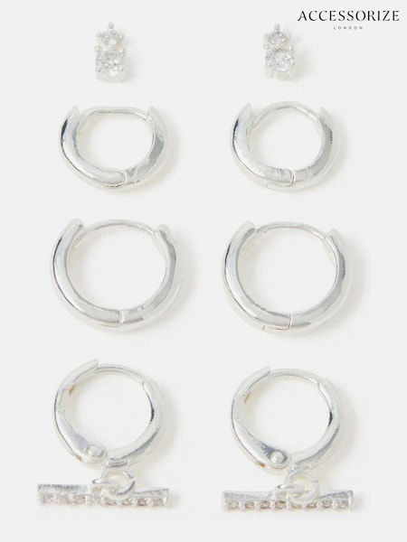 Accessorize Silver Tone Sterling Silver-Plated T-Bar Hoop Earrings 4-Pack
