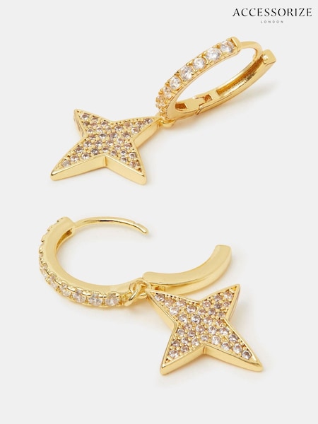 Accessorize Gold Tone 14ct Gold-Plated Diamanté Star Charm Hoop Earrings