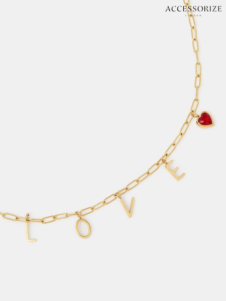 Accessorize Gold Tone Stainless Steel Love Charm Necklace