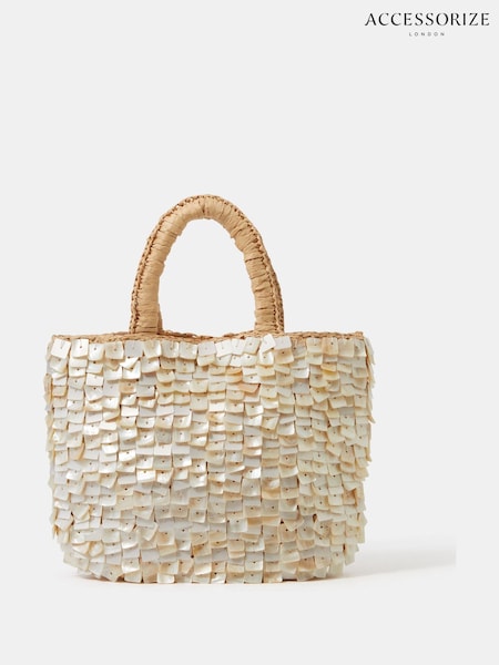 Accessorize Cream Mother of Pearl Raffia Handheld Bag