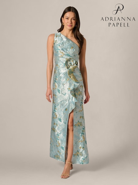 Adrianna Papell Blue Petite Metallic Jacquard Rose Gown
