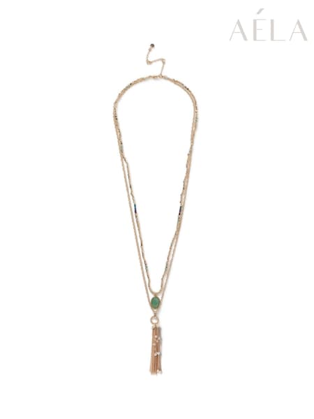 Aela Gold Tone Multirow Tassel Bead Necklace