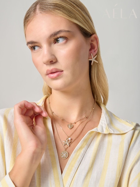 Aela Gold Tone Multirow Starfish Charm Necklace