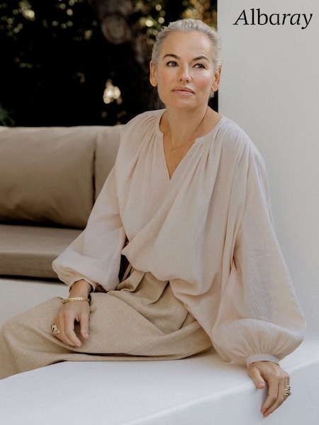 Albaray Cream Anna Unwin Crinkle Cotton Kaftan Top