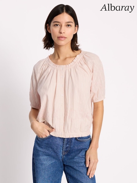 Albaray Pink Elastic Hem Scoop Neck Top