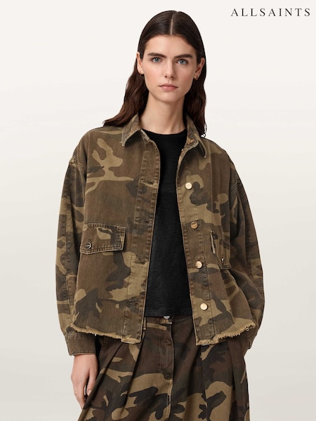 AllSaints Green Hettie Camo Shacket