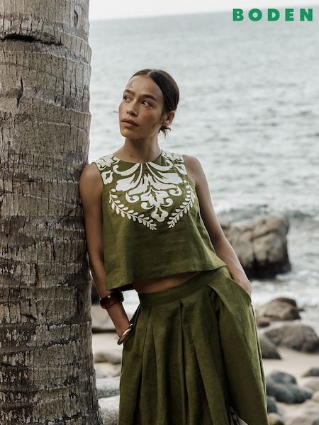 Boden Green Sofia Embroidered Linen Top