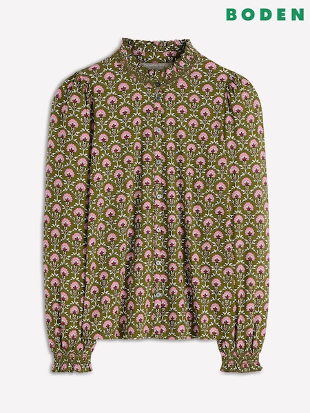Boden Green Effie Smocked Detail Shirt
