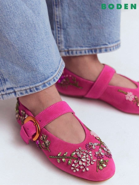 Boden Pink Kylie Flat Buckle Mary Janes Shoes