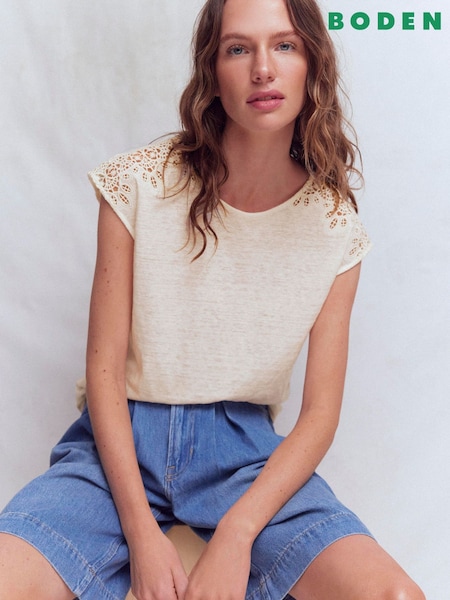 Boden Cream Tara Cutwork Linen T-Shirt