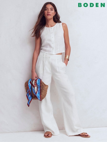 Boden Cream Agnes Linen V-Neck T-Shirt