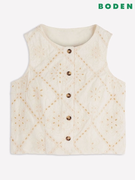 Boden Cream Rosie Embroidered Jersey Top