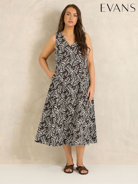 Evans Brown Linen Blend Leaf Print Maxi Dress