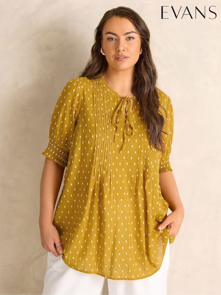 Evans Brown Pleated Front Balloon Sleeve Top