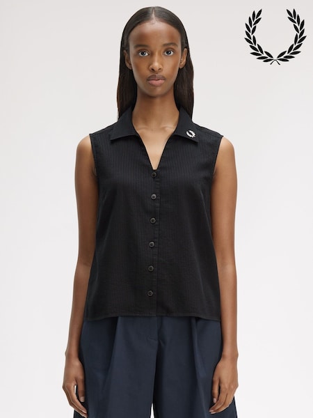 Fred Perry Black Sheer Stripe Sleeveless Shirt