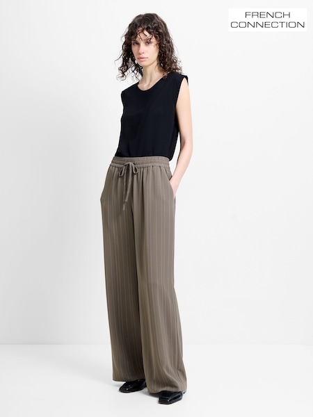 French Connection Green Erma Pinstripe Wide Leg Trousers