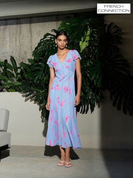 French Connection Blue Myla Emina Chiffon Tea Dress