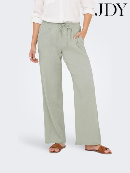JDY Blue Embroidery Detail Wide Leg Ankle Trousers