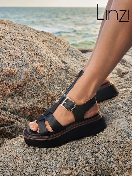 Linzi Black Subtract Gladiator Style Flatform Sandals