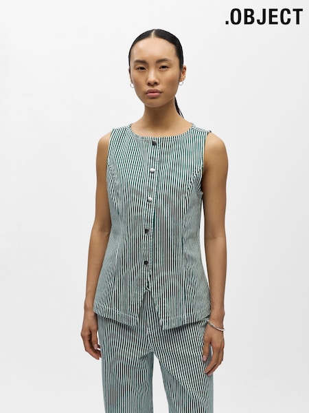OBJECT Navy/White Stripe Wide Leg Stretch Waist Trouser