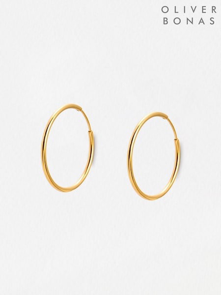 Oliver Bonas Gold Tone Janis Shiny Stainless Steel Waterproof Small Hoop Earrings