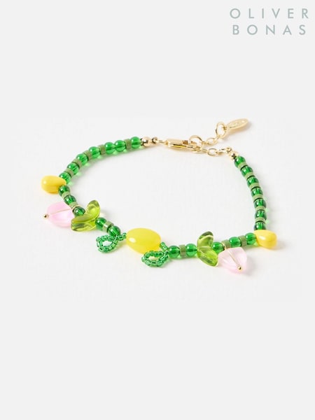 Oliver Bonas Green Tori Tulip Detail Beaded Bracelet