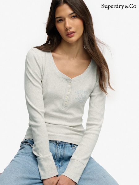 Superdry Grey Athletic Button Down Long Sleeve Top