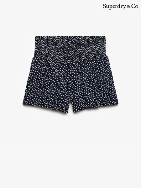 Superdry Navy Printed Mini Smocked Shorts