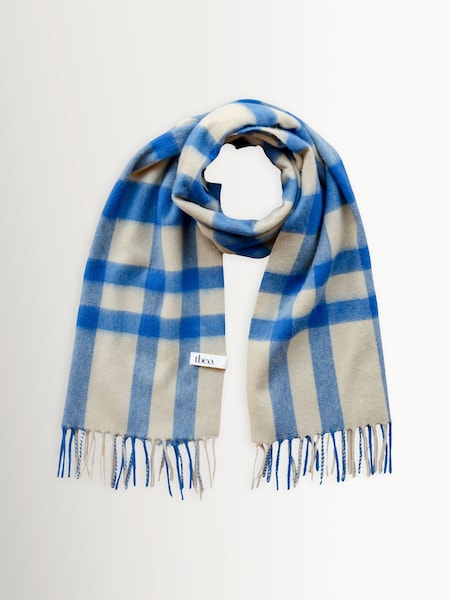 TBCo Blue Modern Tartan Lambswool Oversized Scarf