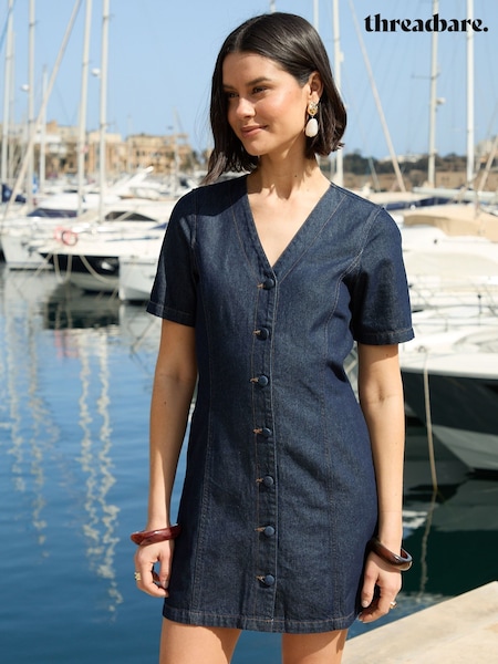 Threadbare Blue Tie Front Side Split Cotton Jersey Midi Dress