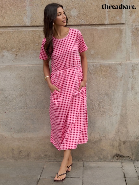 Threadbare Pink Petite Jersey Midi Smock Dress with Pockets