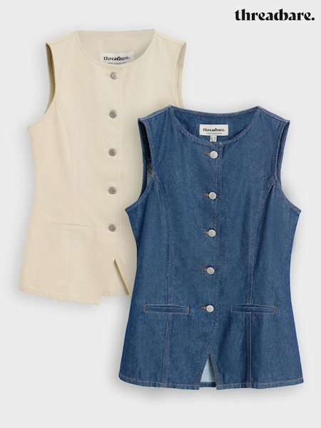 Threadbare Natural Denim Tie Back Waistcoats 2 Pack