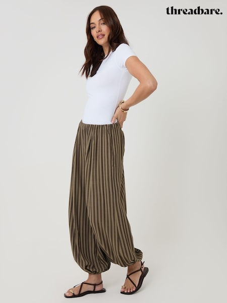 Threadbare Brown Stripe Balloon Trousers With Pockets