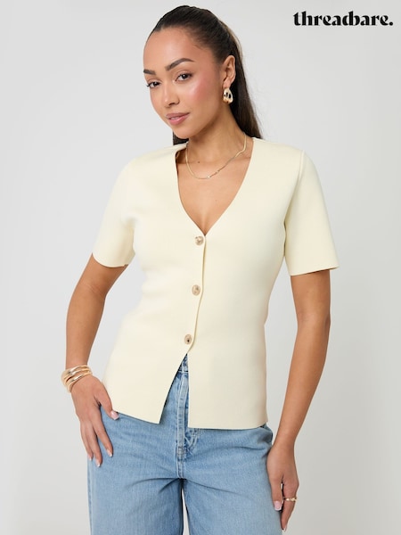 Threadbare Yellow V-Neck Compact Knitted Top