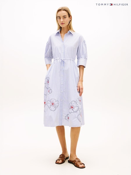 Tommy Hilfiger Blue Embroidery Poplin Midi Shirt Dress